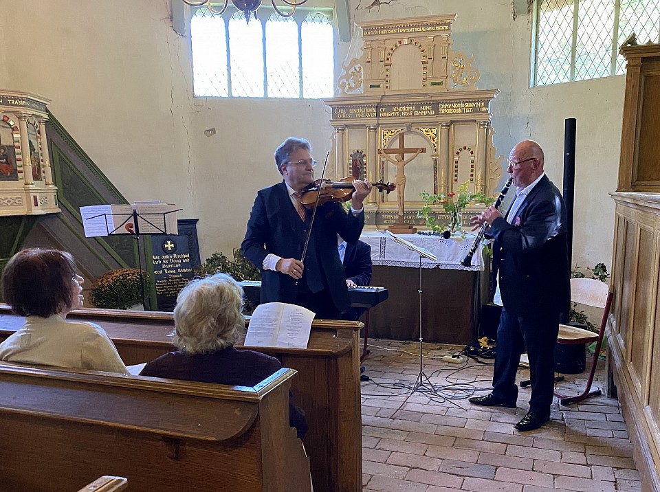 Anlässlich der jährlichen Mitgliederversammlung des Briester Fördervereins wurde am 20. September zum musikalischen Nachmittag in die Kapelle des Rittergutes eingeladen. Zu Gast war das “Monti-Trio”. Marco Reiss (Violine), Manfred Preis (Klarinette) und Burkhard Bauche (Klavier) erfreuten das Publikum in der geschmückten Kapelle mit festlicher Musik u.a. von Händel, Bach, Brahms und Mozart. Ein Höhepunkt des Konzerts war das „Ave Maria“ von Franz Schubert, das zusätzlich ins Programm aufgenommen wurde. Nicht fehlen durfte ein bekanntes Werk des Namensgebers des Trios, Vittorio Monti. Er schrieb einige Ballette und Operetten. Berühmt ist sein „Czardás“, ein schwungvolles Stück, das natürlich zum Abschluss des Konzerts nicht fehlen durfte.